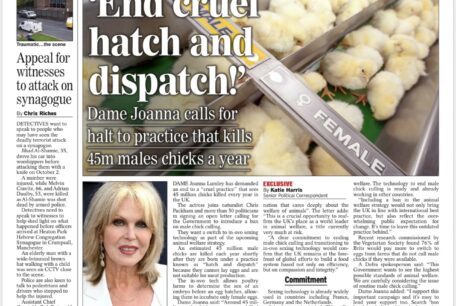 Over 50 MPs, Peers and MSPs and high profile figures including Dame Joanna Lumley, comedian Dave Spikey and TV Vet Dr Marc Abraham urge the Government to include male chick culling in its upcoming Animal Welfare Strategy.