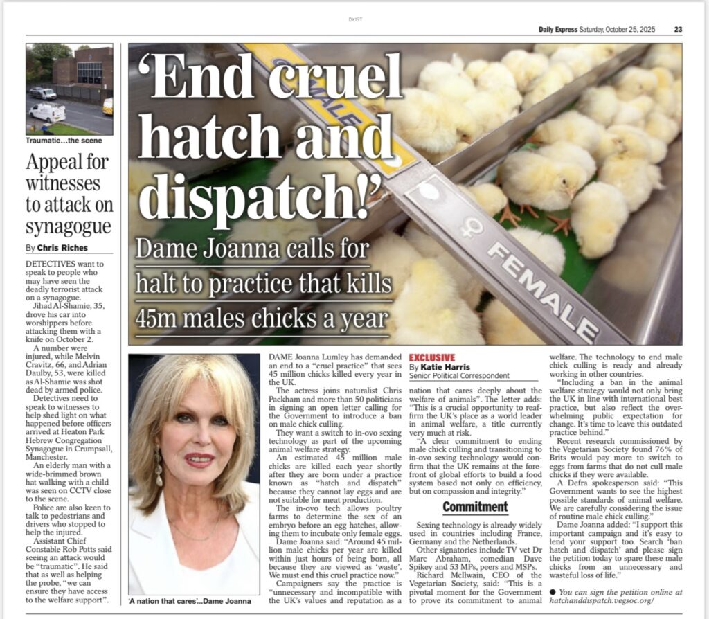 In case you didn’t see it on our socials or in print, our Ban Hatch and Dispatch Campaign was featured in the Daily Express. Headlined with our supporter Dame Joanna Lumley, it has really accelerated the petition sign ups and more letters to MPs.