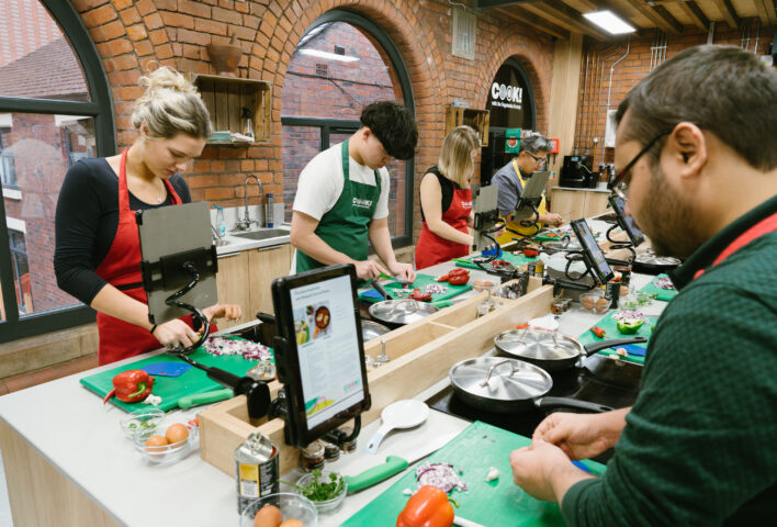 COOK! is located in the heart of Ancoats which was recently named one of the UK’s top seven coolest neighbourhoods by Time Out. The cookery school is just a 15-minute stroll from Piccadilly Station. Make a day of it by exploring the area’s buzzing cafes, canals, and independent shops.