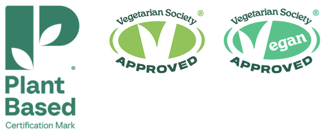 There are three Vegetarian Society Approved trademarks – one for vegetarian products , one for vegan products and one for Plant-Based products. The vegetarian trademark has been in use since 1969, and the vegan trademark was registered in 2017. Our plant-based certification became available in 2024.