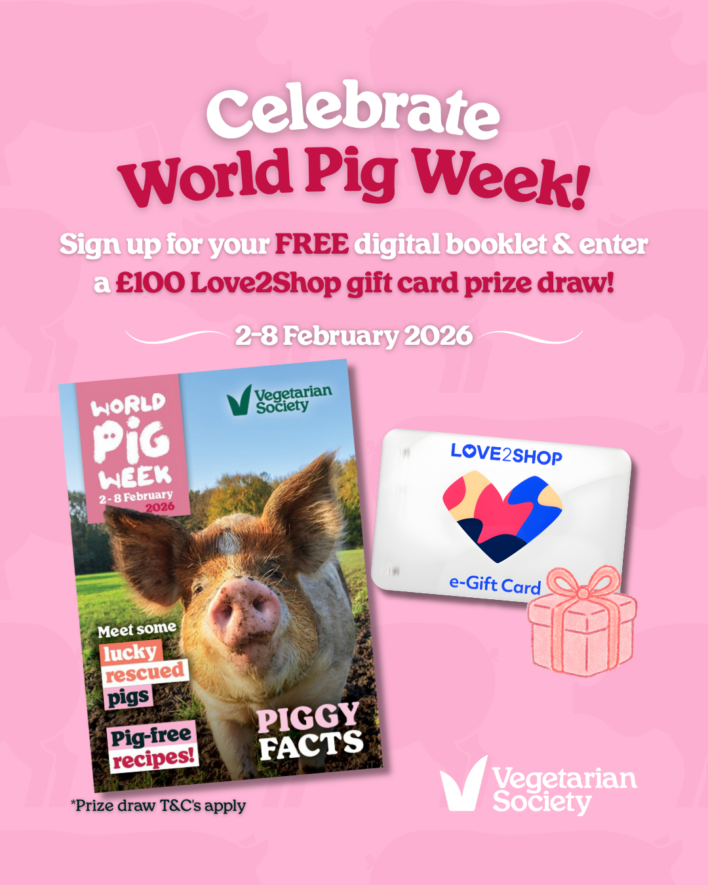 This World Pig Week (2nd to 8th February 2026) sign up below to get your FREE digital booklet, with inspiring rescue stories, piggy facts, interesting reads, and some delicious vegetarian and plant-based recipes.